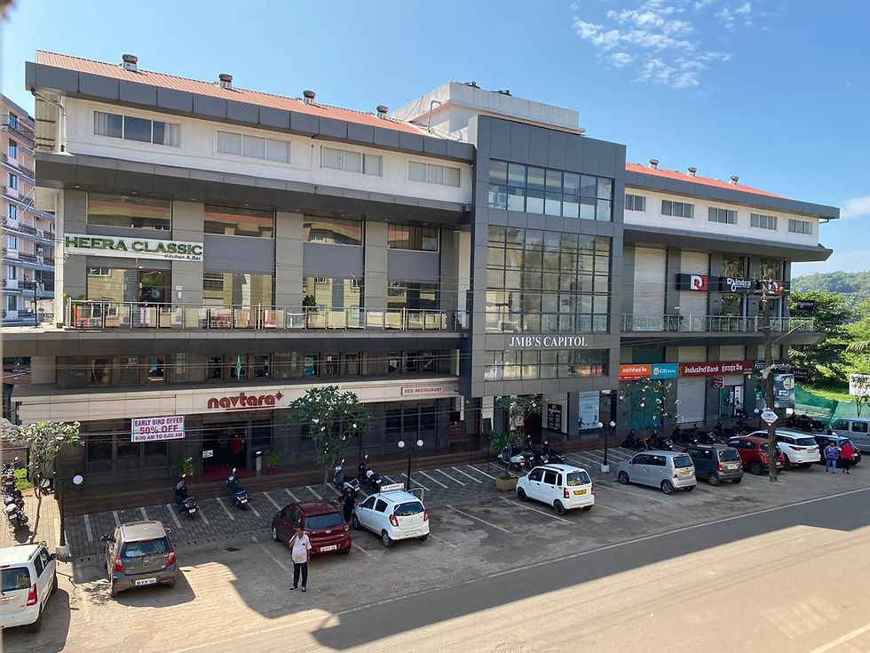 JMB’S Capitol shops are situated in the heart of Mapusa City, the business hub of North Goa. JMB’s Capital is strategically located and has the potential to maximize your retail / office space and visibility since it is easily accessible to Panjim, Calangute and the Northern coastal belt. This modern, glass structure with aluminum cladding, double height and wide frontage is the ideal location to kick-start your retail venture. Ample parking space, elevators, generator back up and being surrounded by large residential projects multiplies prospects of business.